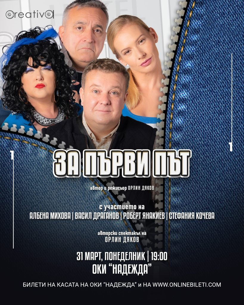 За всяко нещо има първи път – така казва народа. За първи път момчето става мъж, за първи път някой може да срещне любовта, за първи път една малка случка може да ти посочи правилният път, за първи път може да те споходи щастие. Много неща могат да се случат за първи път един следобед в една хотелска стая. И всеки човек може да открие нещо за себе си за първи път гледайки театрално представление. Когато актьорите са Албена Михова, Стефания Кочева, Васил Драганов и Роберт Янакиев може да е сигурен, че ще го разсмеят и развълнуват до сълзи. Всичко това ще ви се случи, ако гледате авторският спектакъл на Орлин Дяков „За първи път“.